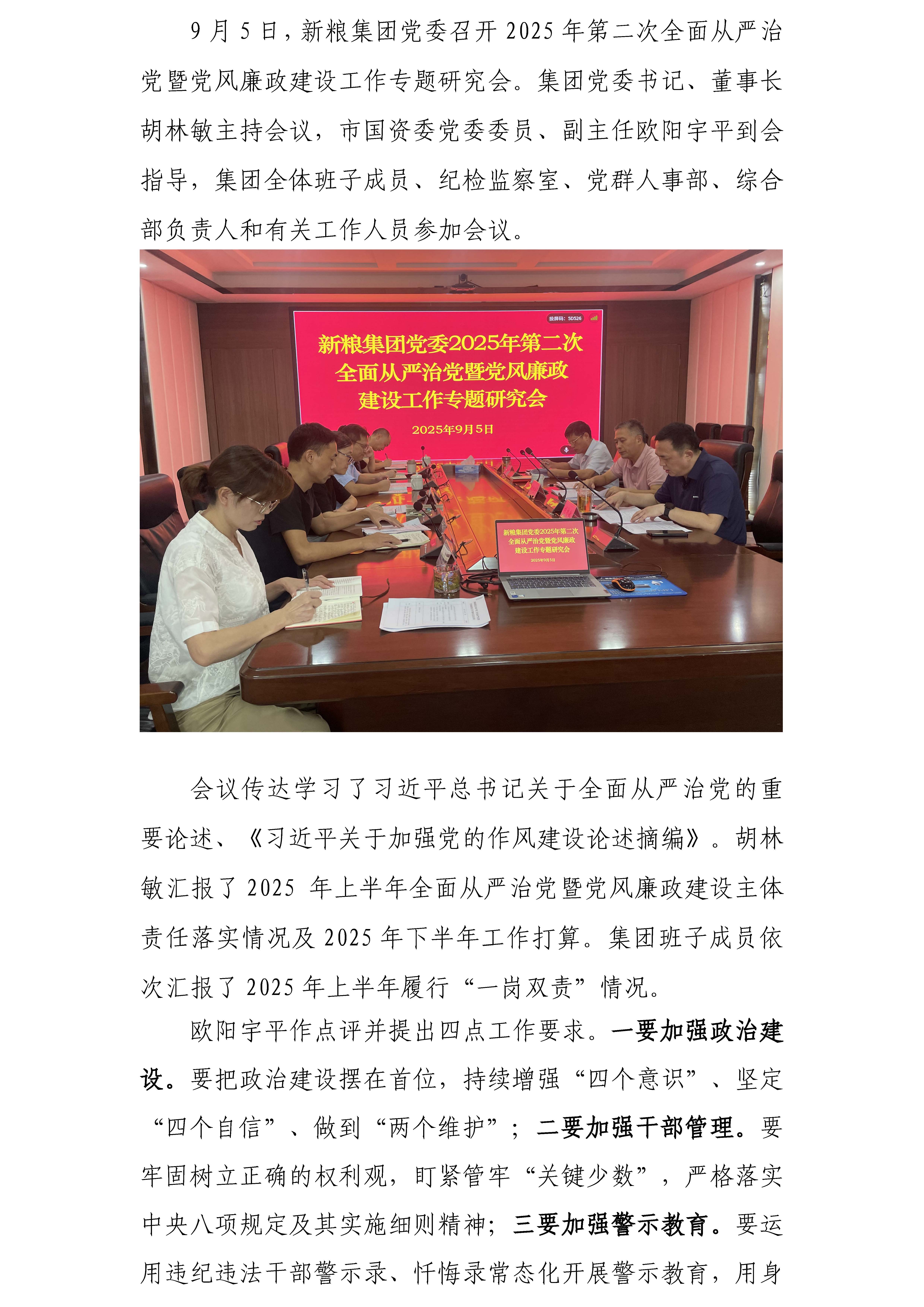 新粮集团党委2025年第二次全面从严治党暨党风廉政建设工作专题研究会